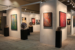 (Art Fair Innsbruck) In the foreground Helga Fox of HF Contemporary Art and the Balsamo's works in the background  |